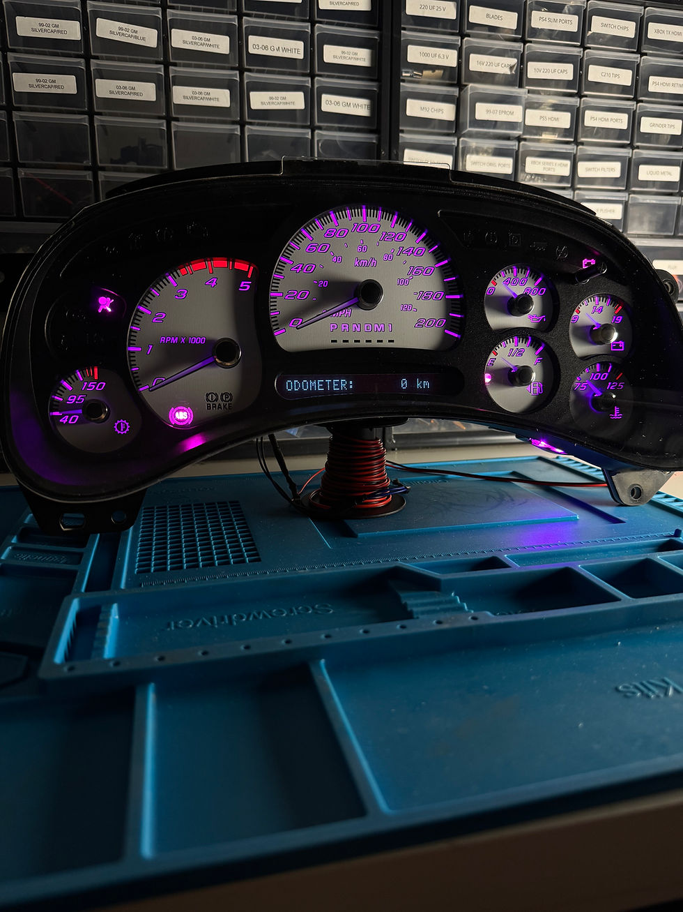 06–07 Diesel GMC Prebuilt Cluster – White Face / Purple Accent